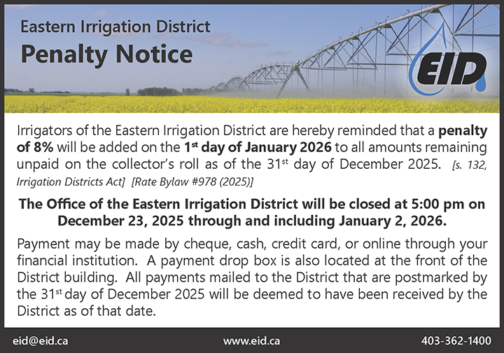 The Eastern Irrigation District is announcing that the following Grazing Associations are accepting applications for grazing privileges for the 2026 Season.